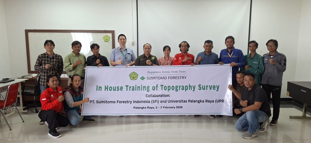 Palangka Raya, 3 Februari 2026 – Pusat Pengembangan IPTEK dan Inovasi Gambut (PPIIG) Universitas Palangka Raya (UPR) sukses menyelenggarakan In-House Training Survey Topografi melalui kolaborasi strategis dengan PT Sumitomo Forestry Indonesia (SFI). Kegiatan yang berlangsung selama 2 hari, yakni pada 2-3 Februari 2026 di Gedung PPIIG UPR ini dirancang khusus untuk menjembatani teori akademis dengan kebutuhan praktis di sektor industri kehutanan.